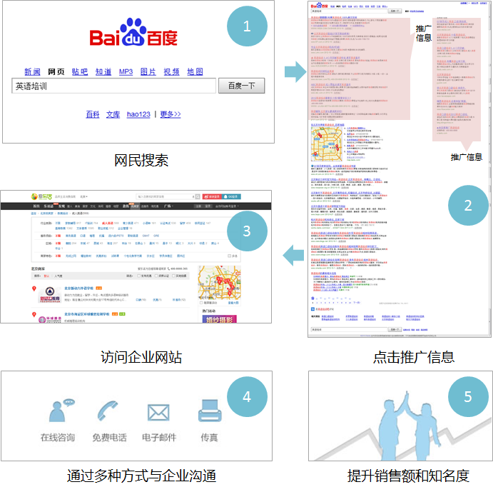 另外,通过百度推广,可以把意向客户引导到企业网站,展示更加丰富的信息、提供更多互动功能,帮助企业达到更好的推广效果。