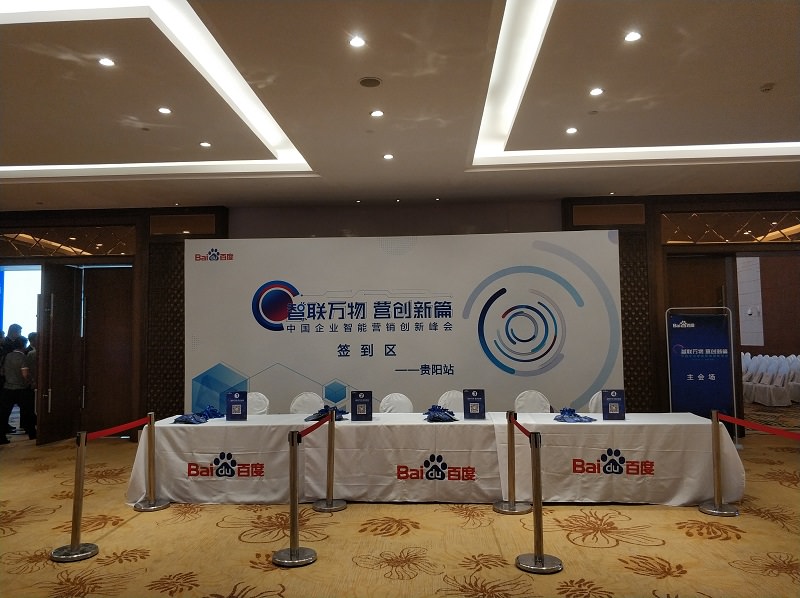 贵阳百度公司(百度贵阳营销服务中心-贵州纵横)于2018.5.23日在贵阳凯宾斯基大酒店举办“智能万物-营创新篇”会议营销活动,此次会议到场嘉宾有百度总部领导及贵州政府和各大媒体共同参与,还有贵州600多家企业嘉宾亲临现场,现场合作客户有“多彩贵州,华夏航空,贵阳银行,天朝上品,优米谷等多家知名企业,会后也有各行业企业家主动咨询百度商务代表并进行签约合作。
