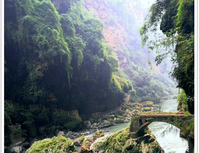 谷中栈道和断桥置于美景中,相得益彰,让人无限遐想,流连忘返。