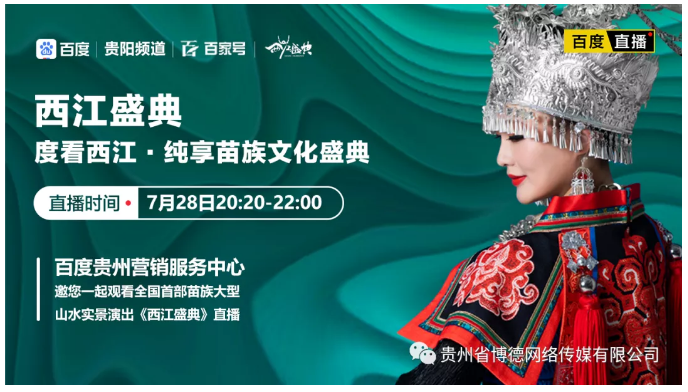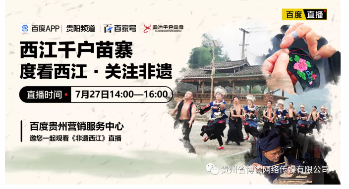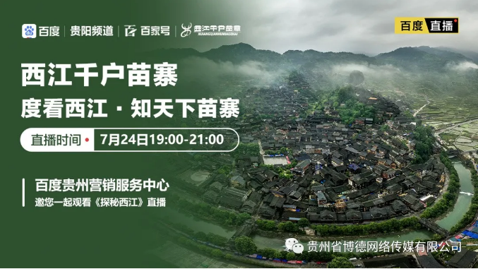 2020年7月,百度贵州营销服务中心联合西江千户苗寨共同推出度看西江系列直播,通过云游带大家一起去探寻西江千户苗寨,这个保存苗族“原始生态”文化完整的地方,这个由10余个依山而建的自然村寨相连成片,这个全世界最大的苗族聚居村寨。