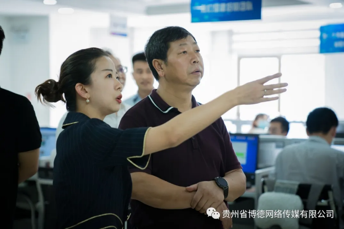 在我公司业务负责人冉烨虹、百度渠道部高级渠道经理李玉及相关部门人员的陪同下,对我公司工作环境进行视察。贵阳市委常委、市纪委书记赵福全、贵阳市南明区委书记邹杰等领导对我公司整洁的办公环境,积极的工作氛围给予了较高评价。
