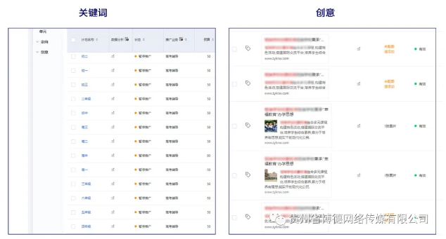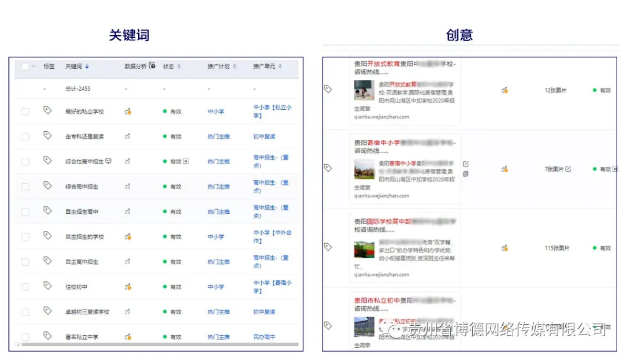 ◆创意中的复读、初中、高中、高考、学校等点击进入落地页都有体现,落地页与创意强相关。