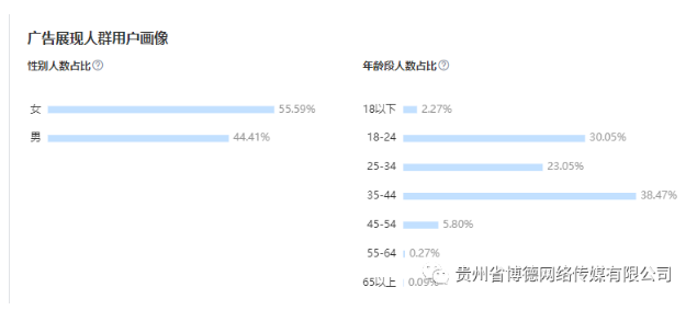 ◆搜索展现集中在18-44岁年龄阶段的人群,其中18-24岁和35-44岁年龄段最多,女性的搜索点击占比较大。